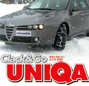 また、タイヤチェーンはタイヤに装着されて初めてその性能を発揮します。「クラック&ゴー・ユニカ」を装着した駆動輪と、装着しない遊輪とでは、その性能が著しく異なります。この大きな性能差により、「クラック&ゴー・ユニカ」を装着した2つの駆動輪が、車の走行を支えます。(摩擦係数-ミューの極端に低い氷雪路面では、車輪前後の性能差により不安定になる事もあります。)従って「クラック&ゴー・ユニカ」の取扱いに十分なご理解をいただき、警告事項等を確実に守っていただく事が、交通安全とご自身の安全のために絶対必要です。警告事項を守らないために、「クラック&ゴー・ユニカ」の性能が発揮できないばかりか、故障ひいては重大事故を招くことにもなりかねません。「クラック&ゴー・ユニカ」は、外傷を受けたり、使用限度を超えると、最終的には切れてしまいます。