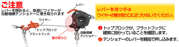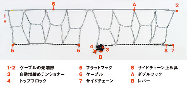 このチェーンは冬季における緊急用装置ですでの、最大限の性能を発揮させるためにも、「取扱説明書」や「ご注意」などをよくお読みいただき、正しくご使用いただきますようお願い申し上げます |